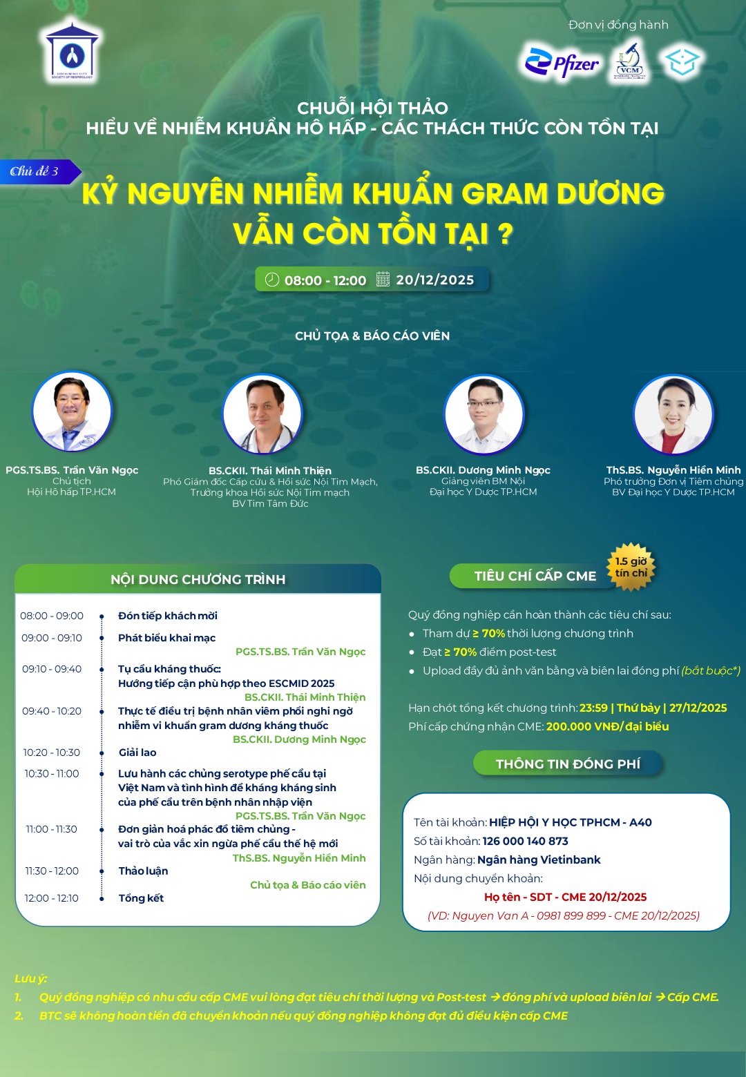 Chuỗi hội thảo về nhiễm khuẩn hô hấp: chủ đề 3 - Kỷ nguyên nhiễm khuẩn Gram dương vẫn còn tồn tại - ngày 20/12/2025