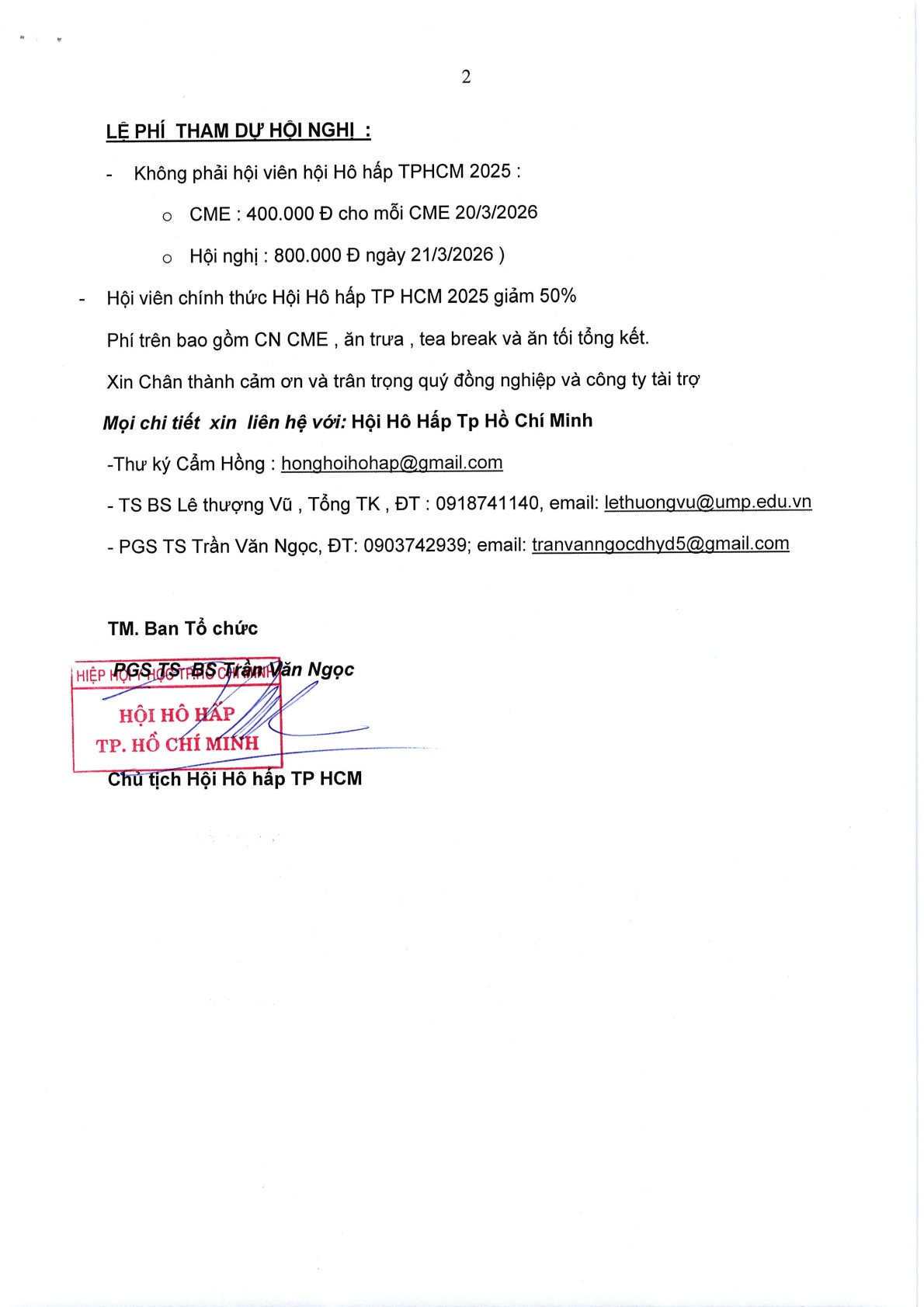 Thông báo lần 2 HNTN và CME Hội Hô Hấp TP.HCM năm 2026 - 20-21/03/2026