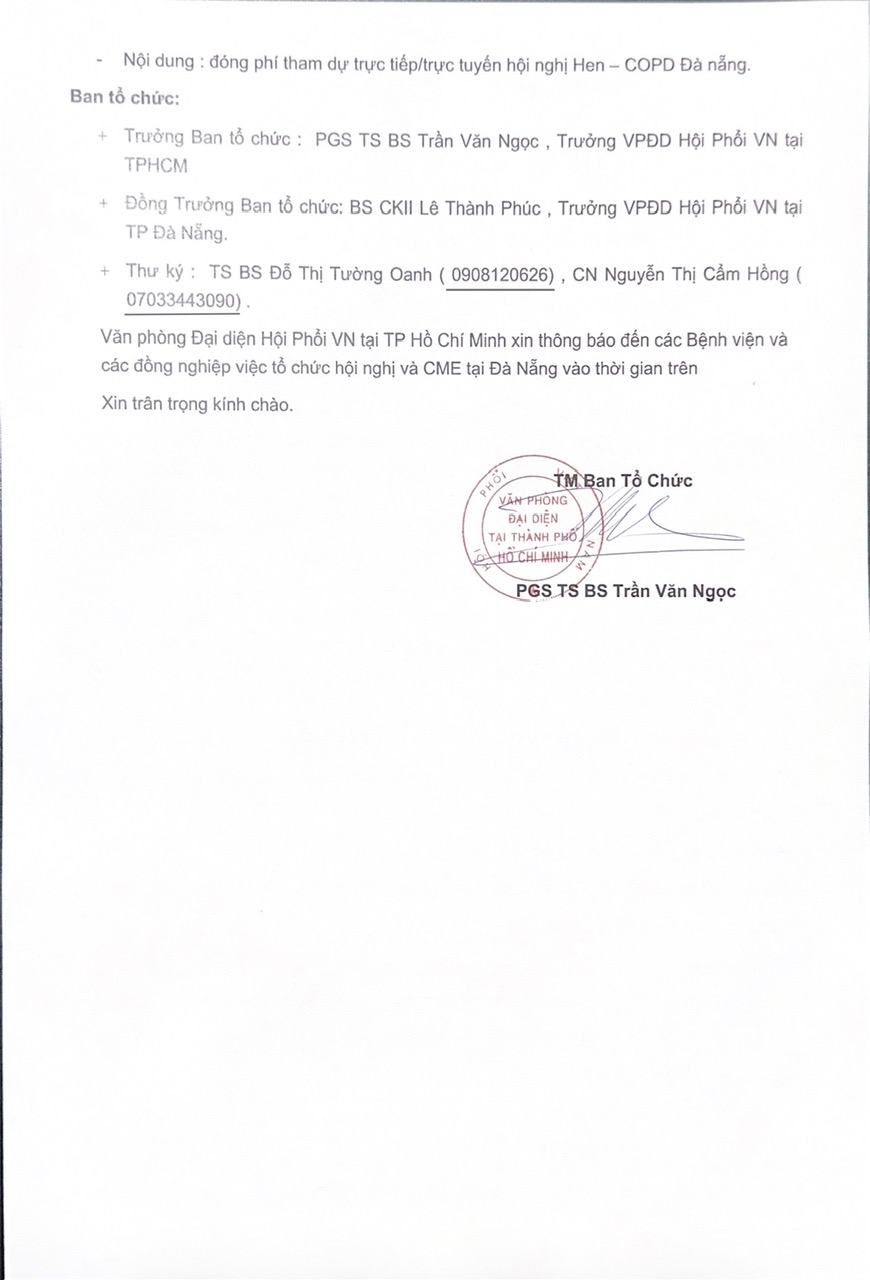 Thông báo lần 2 HNTN và CME Hội Hô Hấp TP.HCM năm 2026 - 20-21/03/2026