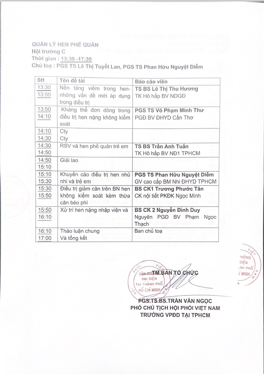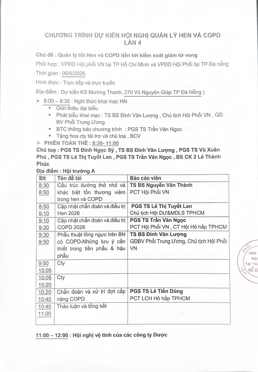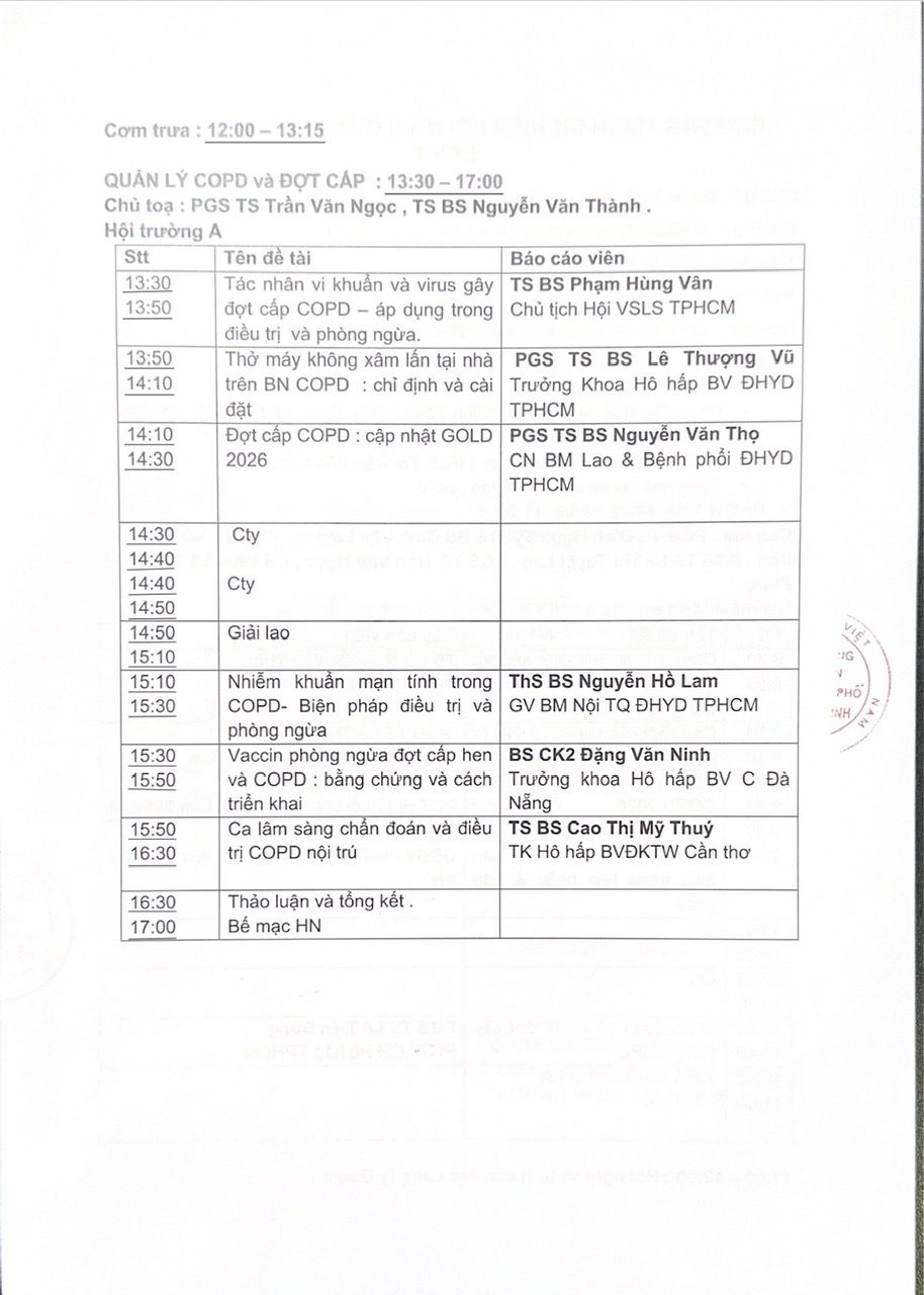 CHƯƠNG TRÌNH HNTN HỘI HÔ HẤP TP.HCM 2026