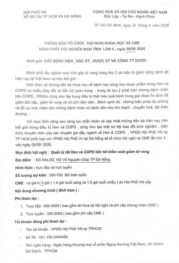 Hội nghị khoa học và CME - Bệnh phổi tắc nghẽn lần 4 - ngày 06/06/2026